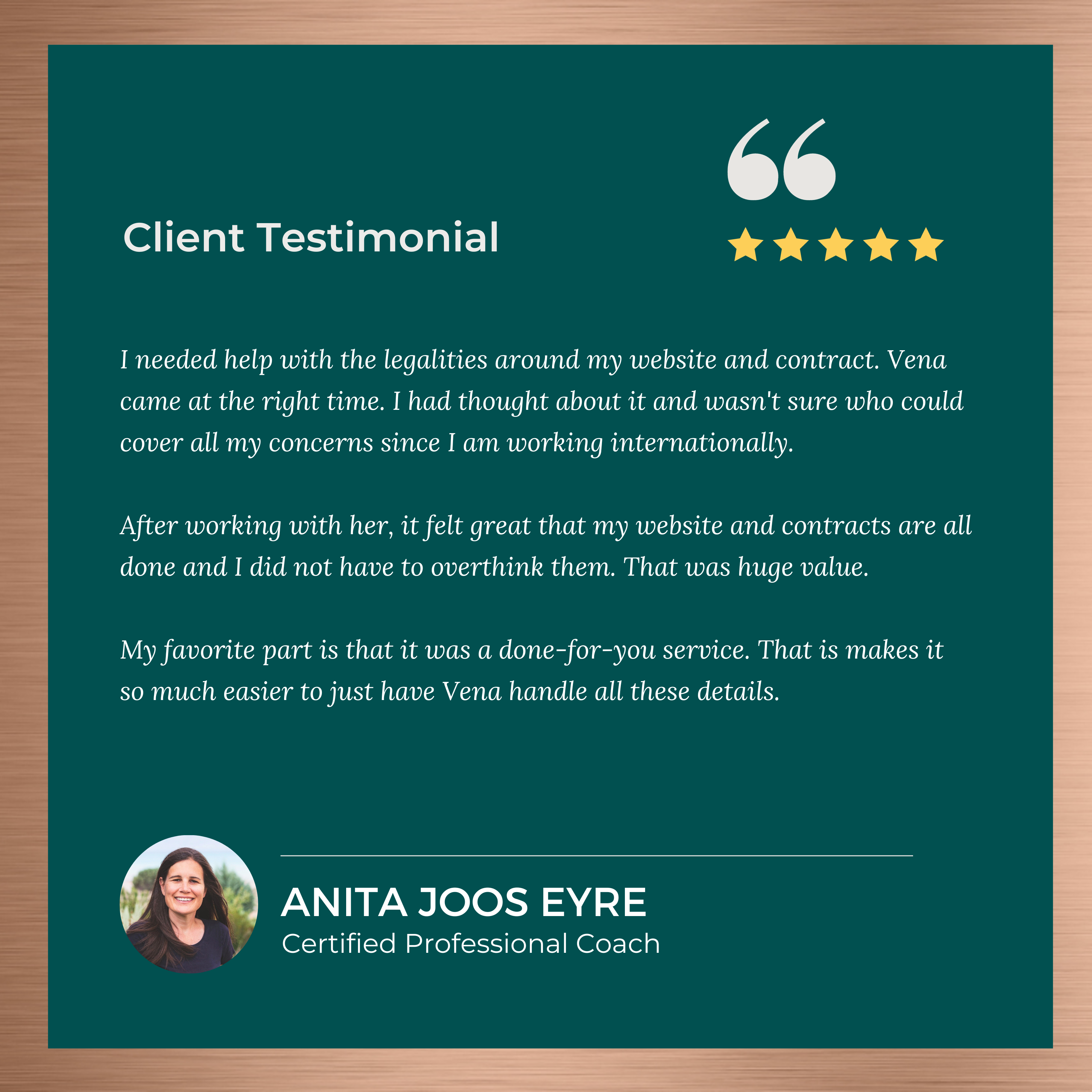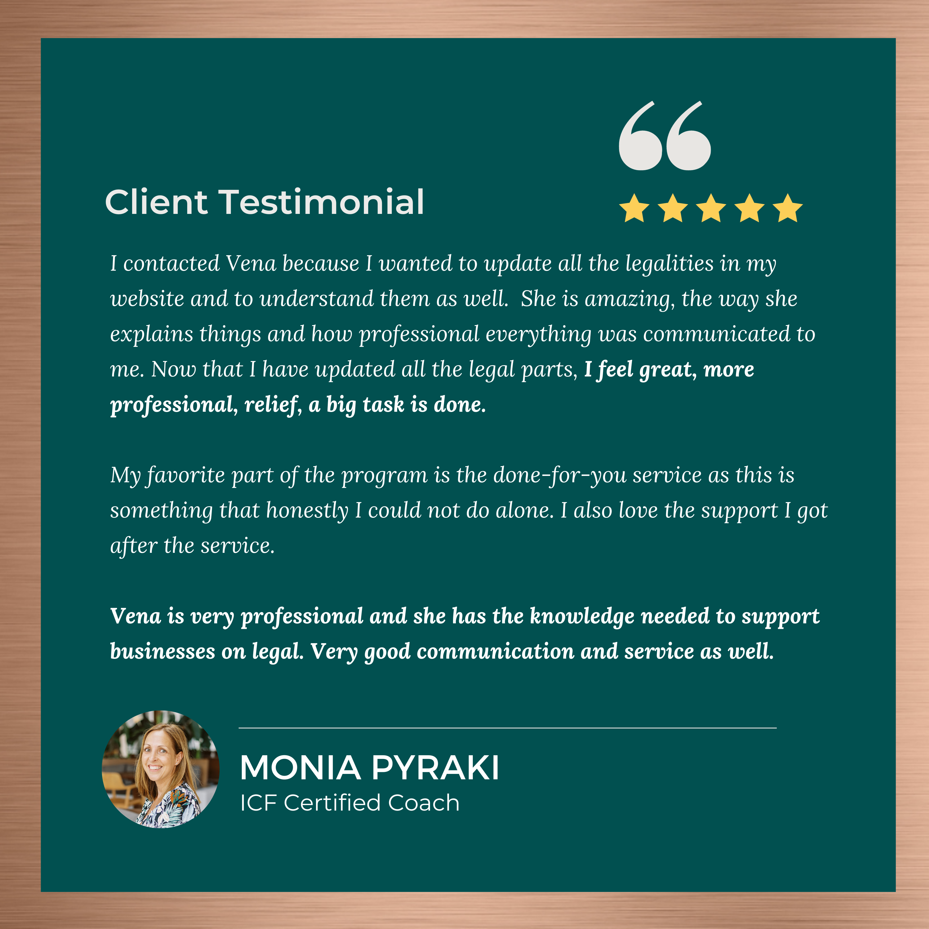 Having legal policies and contracts will not protect you if you don't understand them. And you know what is overwhelming about the legal stuff? They are long and full of legal jargon. While I cannot remove all legal jargons, I can help you understand your contracts and policies through a clarity call. I will use simple language so you don't get overwhelmed. Knowledge breeds confidence and security.